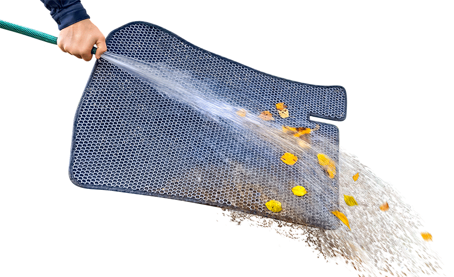 Наши коврики без проблем моются под струей воды.Достаточно будет даже ведра воды и щеточки. Времени при мойке занимают меньше,чем резиновые.. Кроме того,если на резиновых ковриках даже после чистки с моющими средствами остается налет грязи,то наши после каждой мойки выглядят как новые.